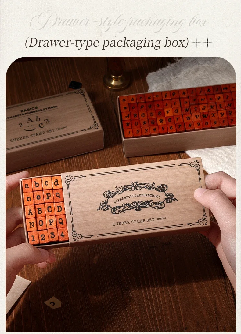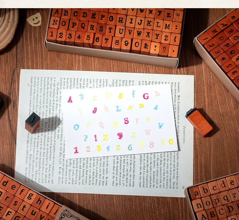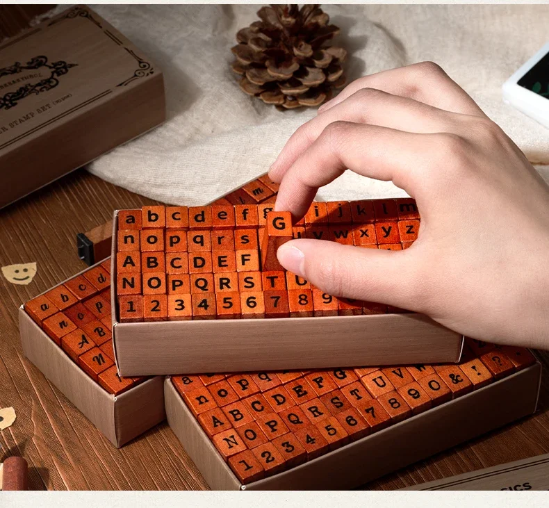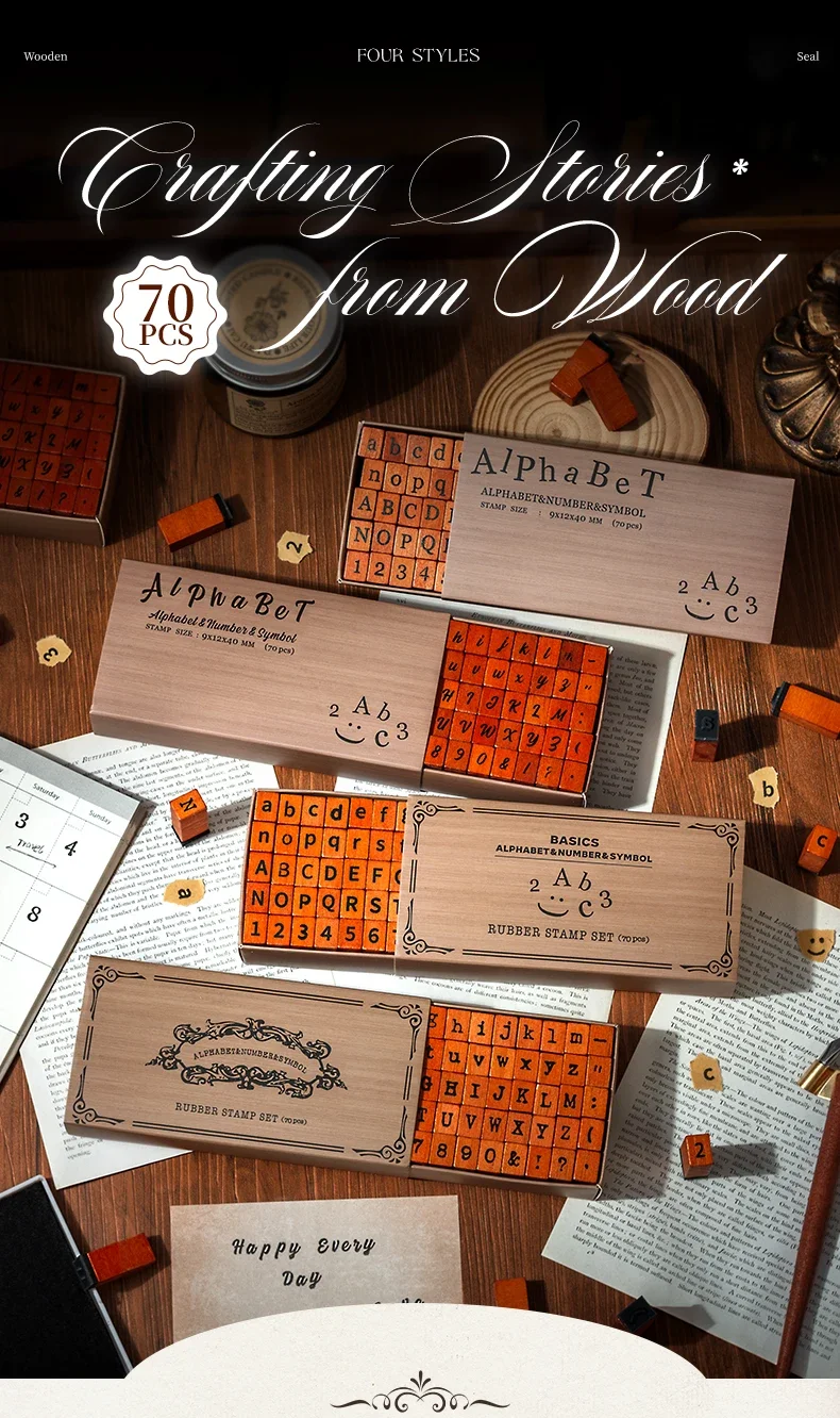 70pcs/set Wooden Rubber AlphabetStamp Set