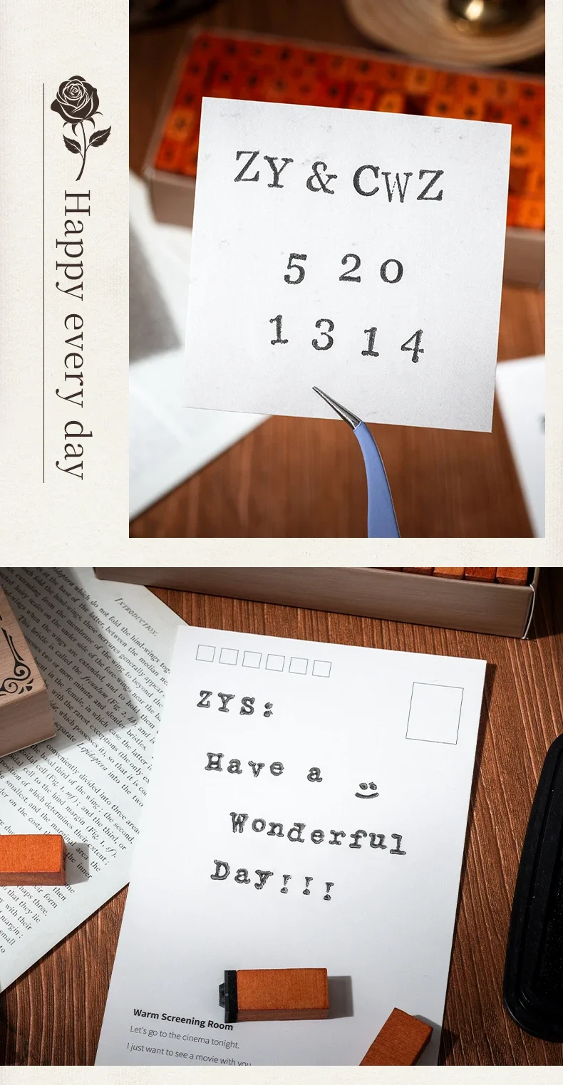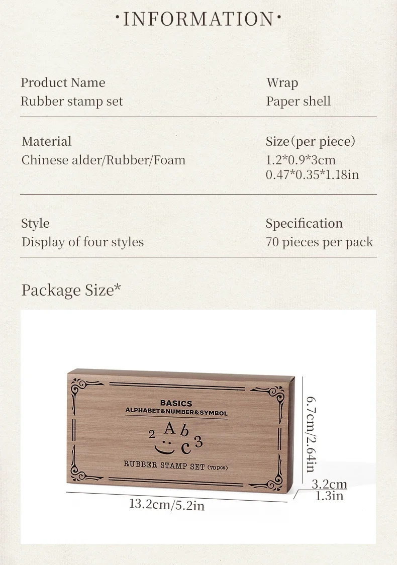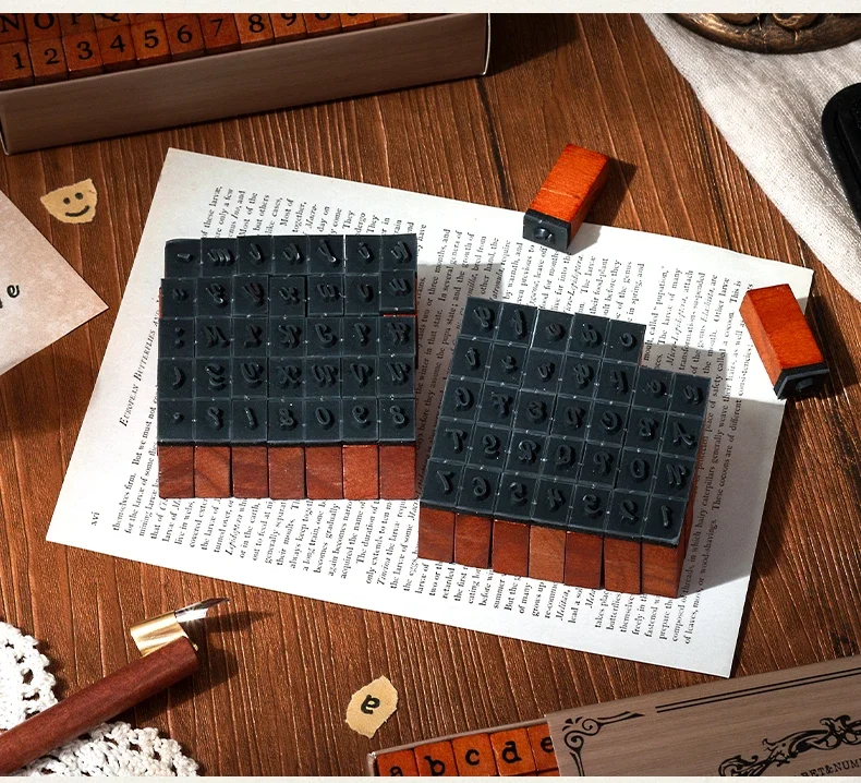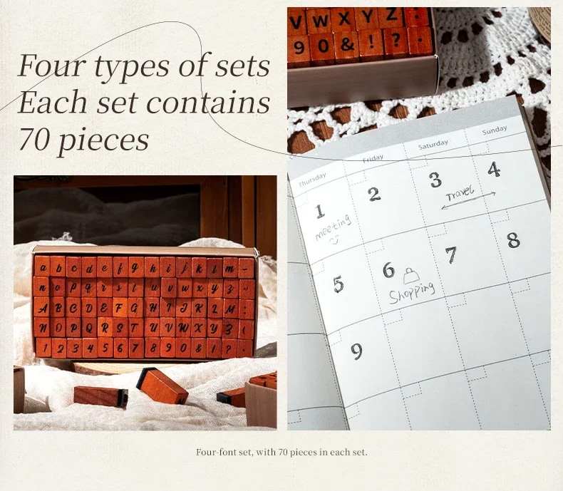 70pcs/set Wooden Rubber AlphabetStamp Set